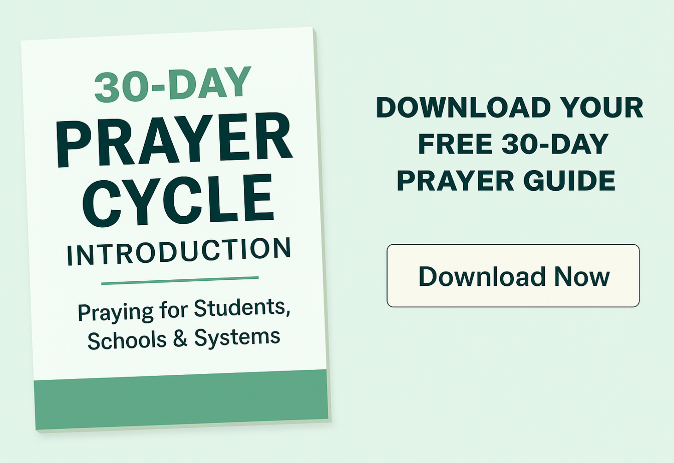 Start with the 30-Day Prayer Cycle for Educators—a free, Spirit-led guide designed to help you strategically cover your classroom, coworkers, and school culture in daily prayer.